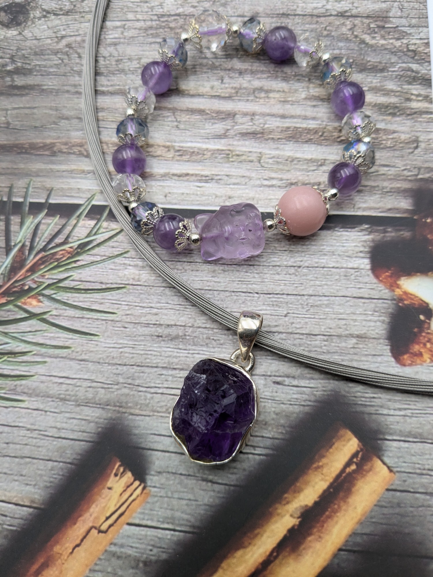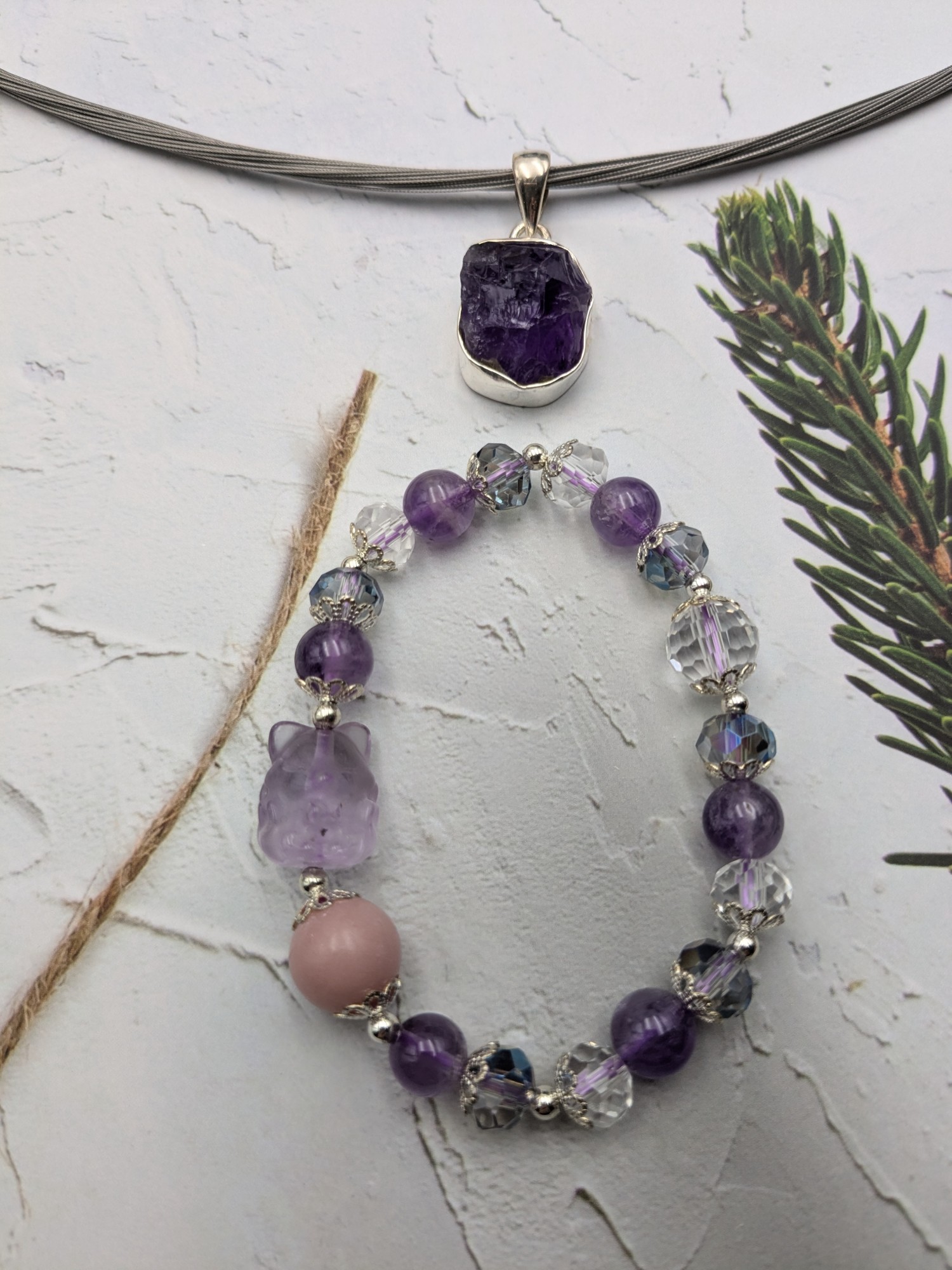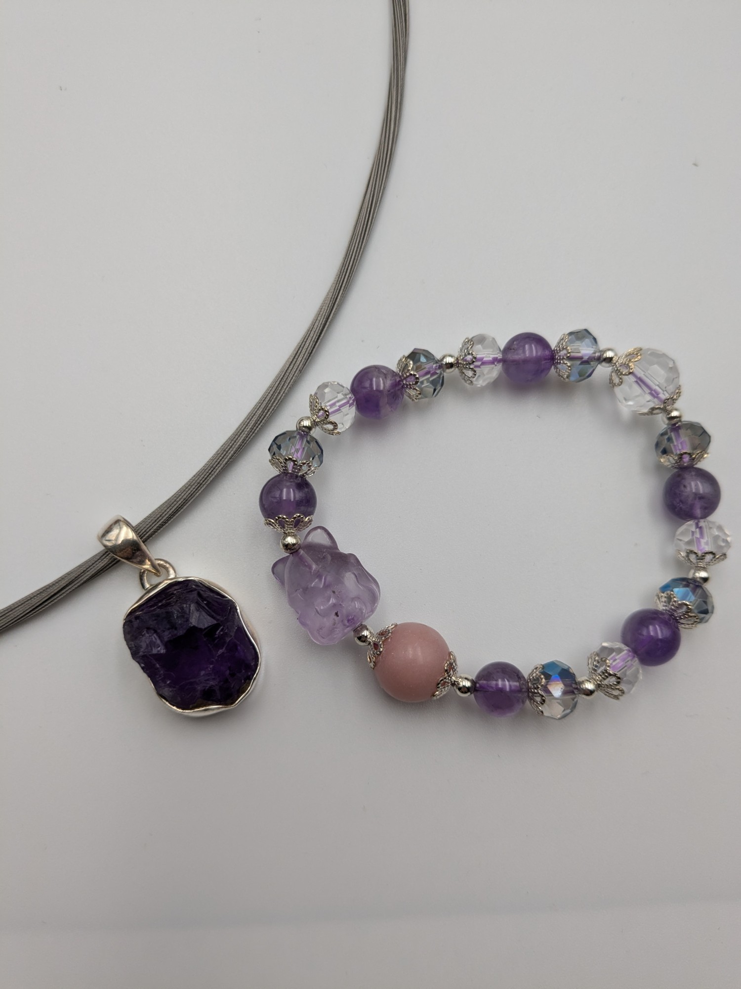 紫水晶方鑽手鍊.紫玉晶方鑽項墜戒指~帝王九紫的力量結合~ 240102-1-25523
