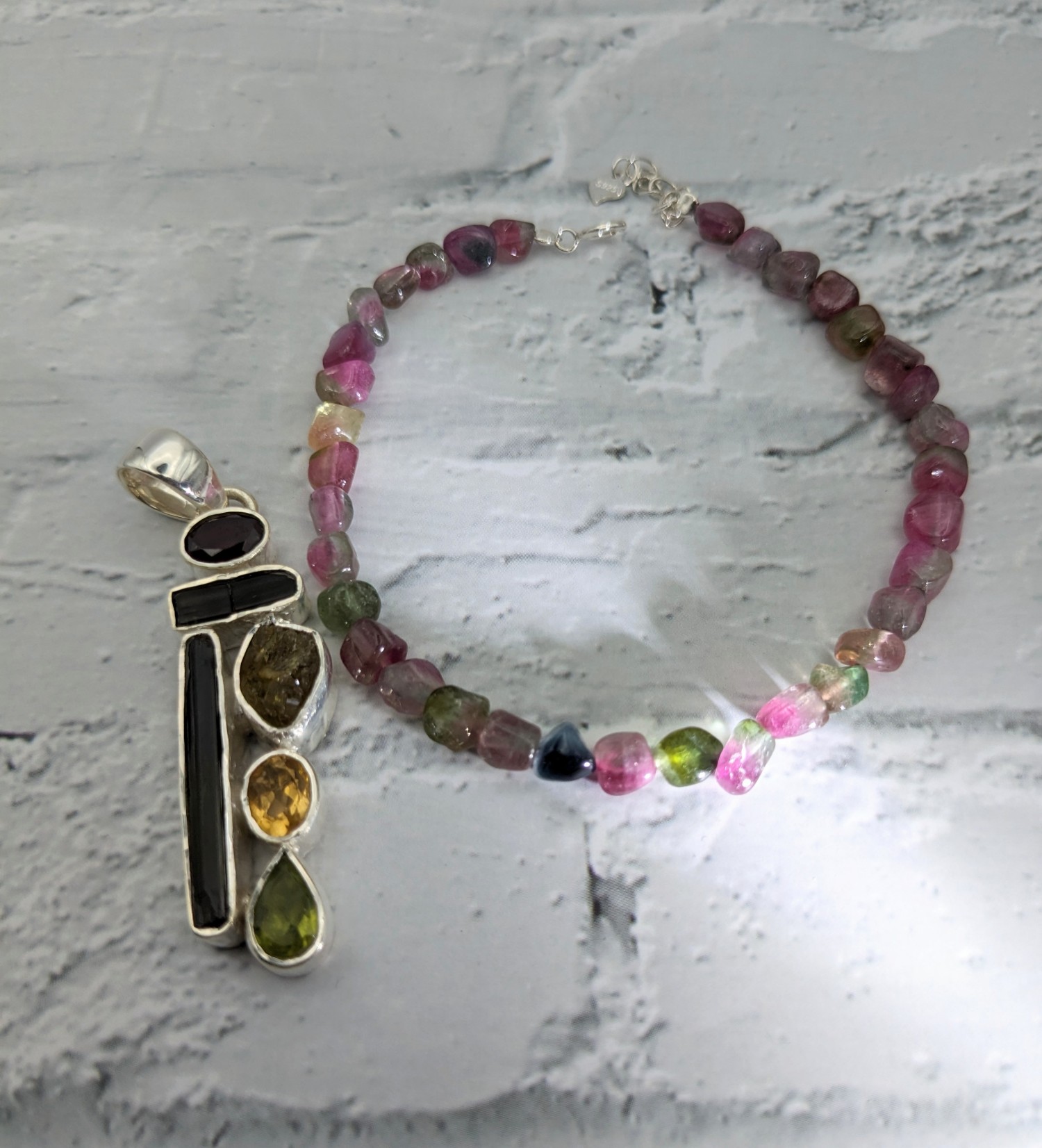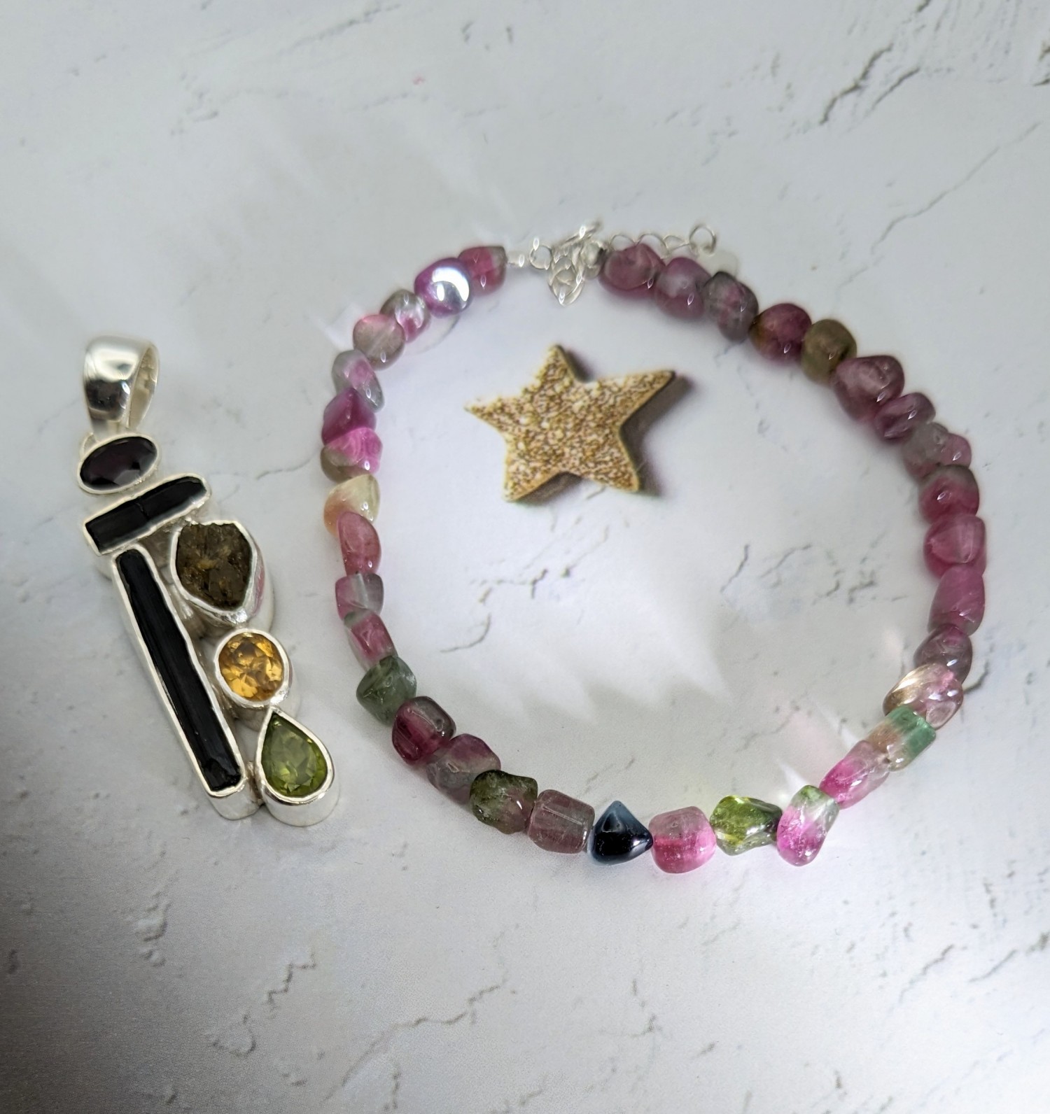 水晶紅膠花、金髮、共生水滴項墜(2cmx1.5cm).+日本钛鋼頸鍊.品號G7.1.6.2961