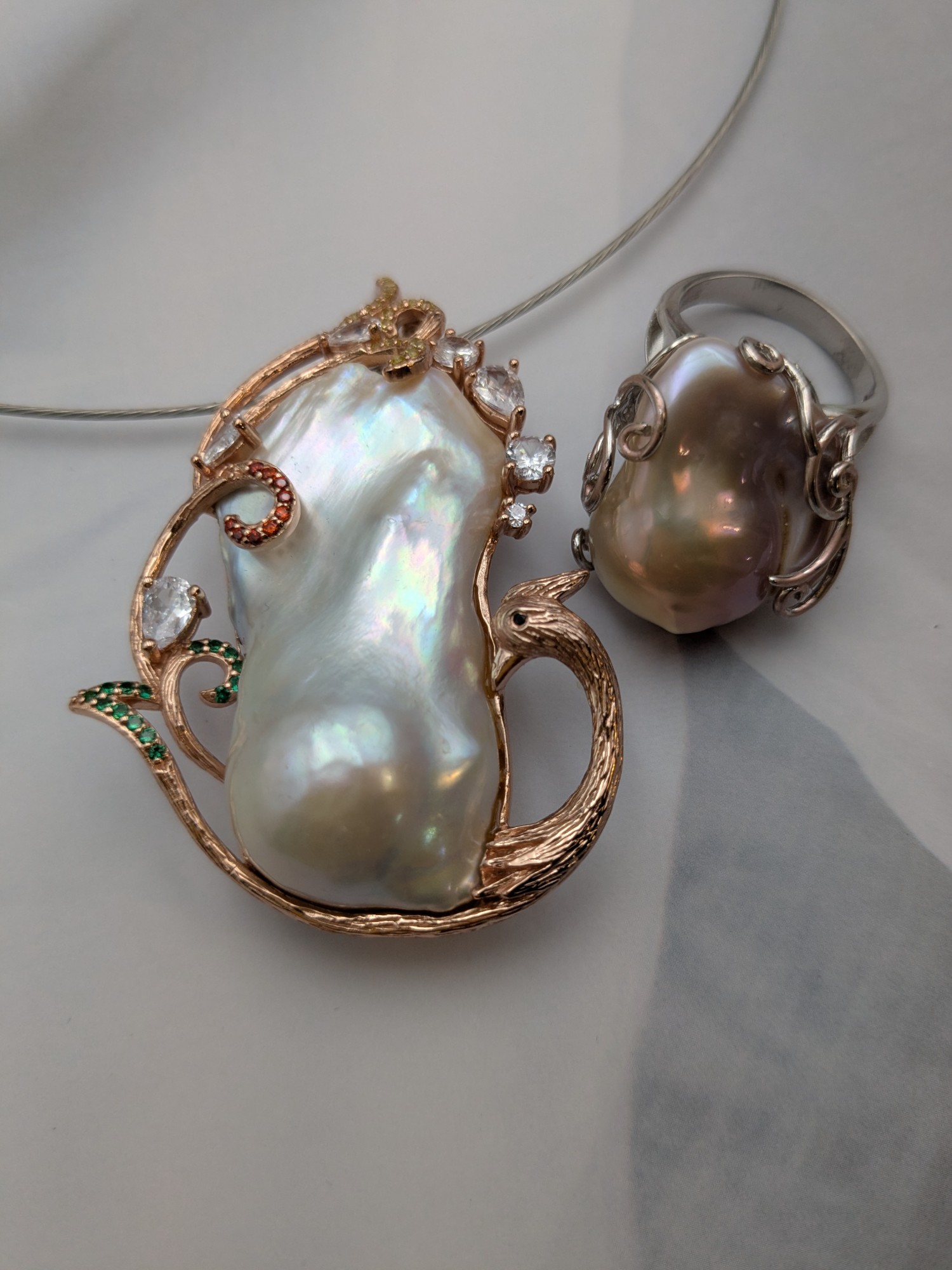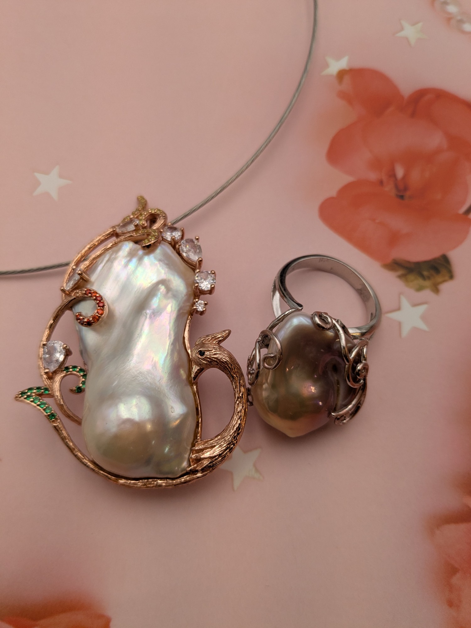 粉水晶T鑽項墜戒子套組G21.2.2. 4741